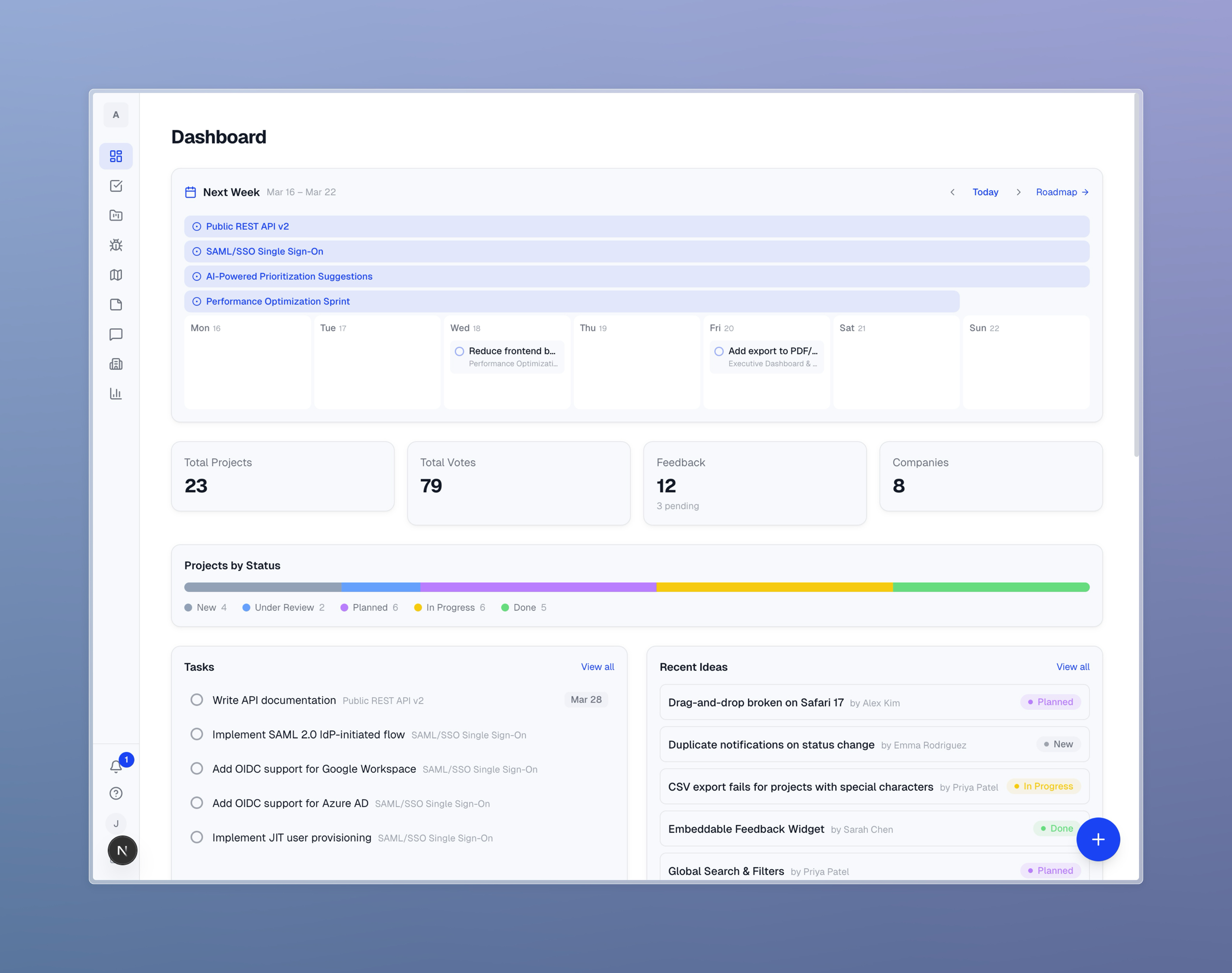 One tool for the entire lifecycle. From capturing a raw idea to celebrating a shipped feature.